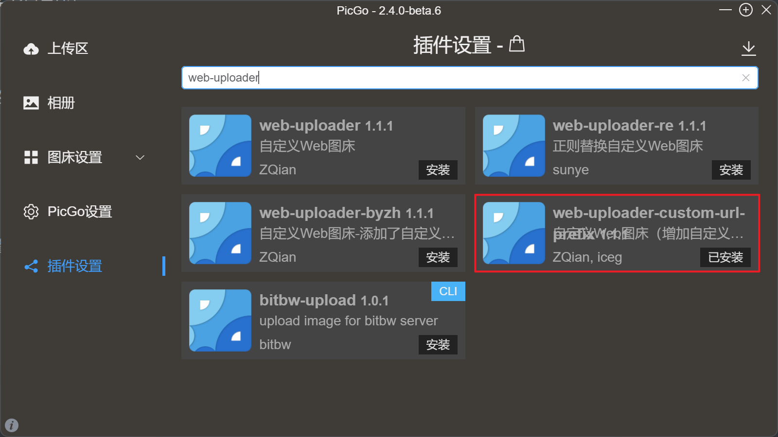 PicGo插件设置中搜索